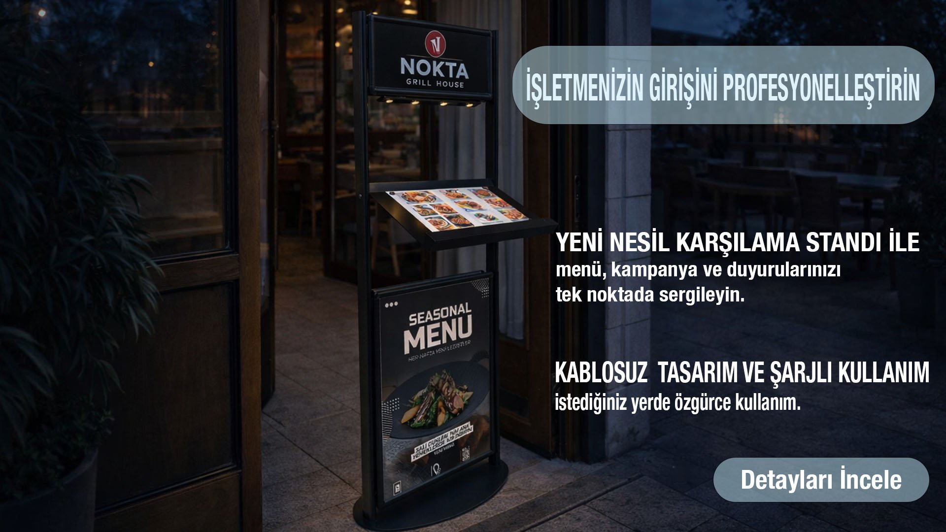 Işıklı Restoran Menü Standı | Alüminyum Çift Taraflı Menü Panosu ve Restoran Karşılama Standı