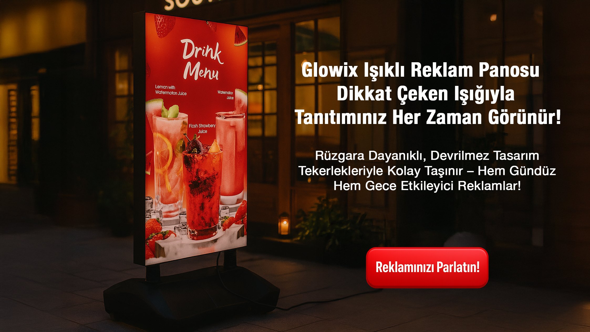 GLOWIX Işıklı Tekstil Baskı Reklam ve Poster Panosu - Su Tabanlı Yaylı Led Pano